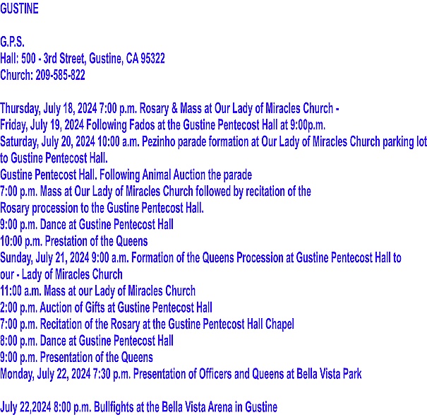 Bloodless bullfights are held every year from April to October. Bullfights are held in conjunction with the holy ghost Portuguese Festa that takes place a couple days before the bullfights, not all Festas have bullfights due to lack of Arena or space or money, a bullfight corrida costs between $25,000.00 and $35.000.00 the monies comes from proceeds from the Festa food stands gate sales, donations from business and volunteers.